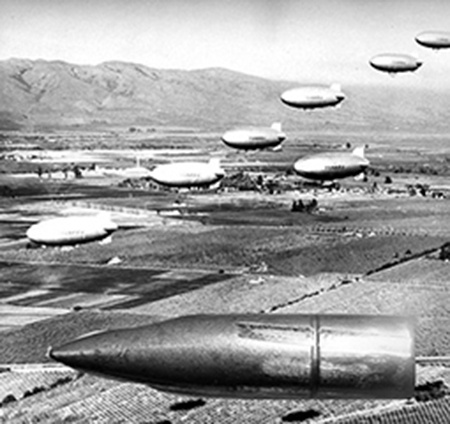 Вдалеке сотни дирижаблей несли огромнейший снаряд.