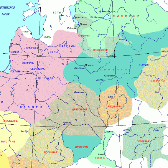 русских не было нигде. А потом они вдруг появились малым числом, и теперь мы имеем целую страну, названную в честь их племенного имени.