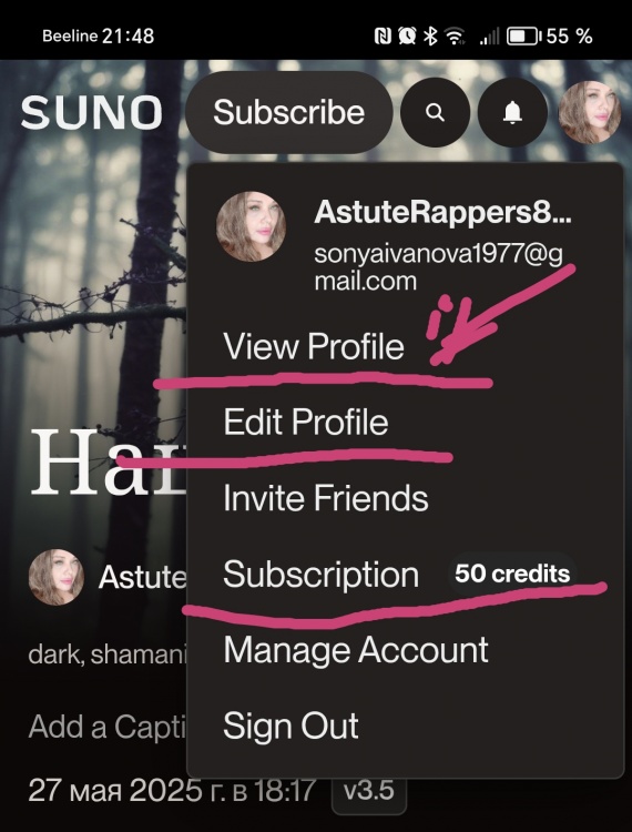 Сайт suno.com регишься, он американский, поэтому региться надо с почты гугла.