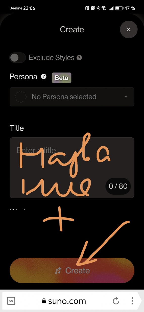Title — название, но я не парюсь, Суно по первым. словам назовёт.