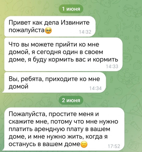 Прикладываю скрины его сообщений. Тлф дала, чтоб отвязался, но он привязался ещё больше.