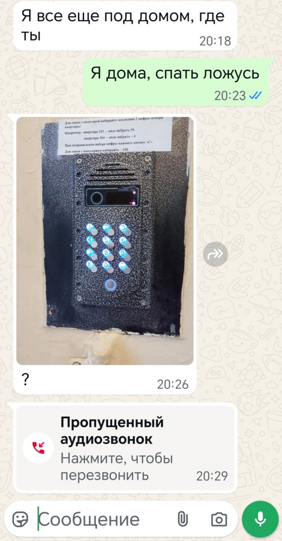 Это он мне намекал, что кода домофона не знает. Но как-то вошел же!!!