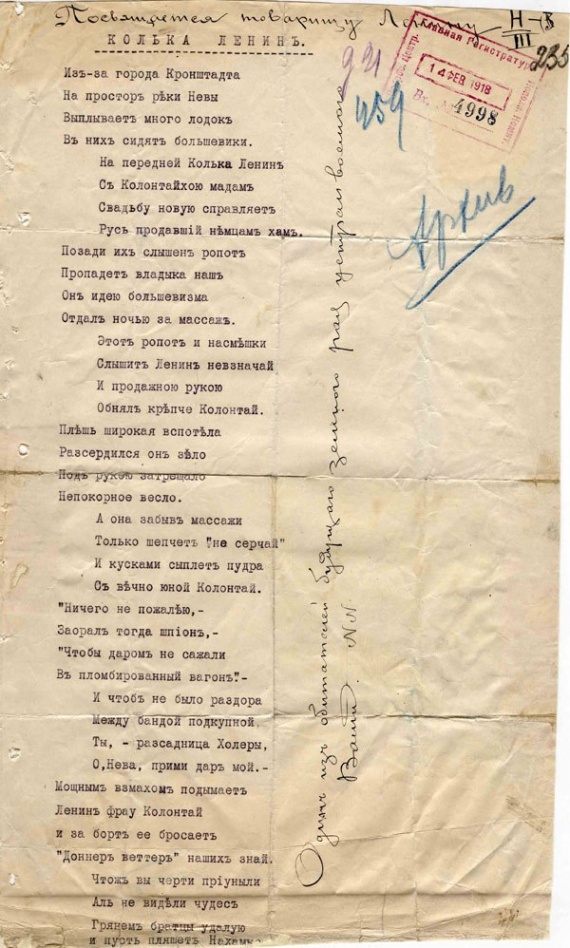 W. Lenin (13 (26) сентября 1916, май 1918)