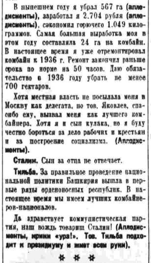 (№ 331 газеты «Правда» от 02.12.1935г., запись совещания передовых комбайнеров 01.12.1935г.).