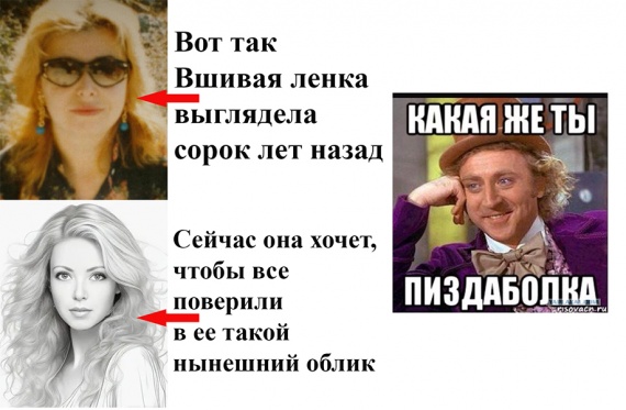 Зачем она это сделала? Не только потому, что отродясь не могла тягаться со мной насчет литературного творчества, главное – раздавленной в лепешку Вшивой, захотелось сочувствия и утешения: ленка – бабка одинокая, нелюбимая ни родственниками, ни соседями, единственная ее радость в жизни – тусня на сайте п.ру среди тождественных ей малочисленных разложенцев, русофобов, предателей нашей Родины, юдофилов, сумасшедших, врунов и прочих антиобщественных личностей.