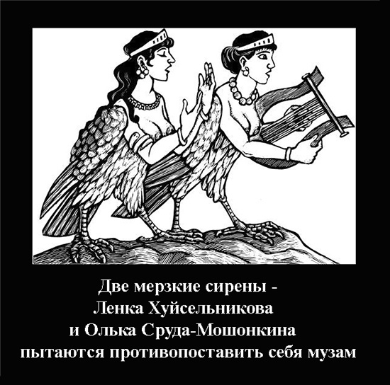 Вот так и Хуйсельникова гнусавым голосочком и дерьмовыми стешками пытается противопоставить себя музам и тем, кого они вдохновляют.