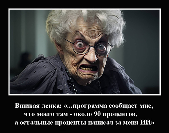 И тут же обращение к кому-то в третьем лице: «Так это не они писали!" — надсажаются критиканы-разоблачители. «Это за них писал ИИ!».