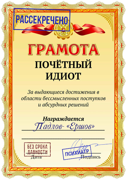 От одного идиота, к сожалению, рождаются ещё несколько. Пример — Ершов. Первый симптом идиотизма — самовлюблённость в свою непогрешимость.