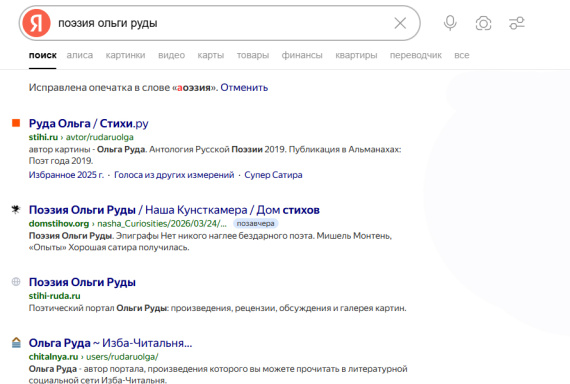 Со своей стороны мы сделали все, что смоги для популяризации мошонкинского говнотворчества – проиндексировали в поисковиках ключевую фразу «поэзия Ольги Руды».