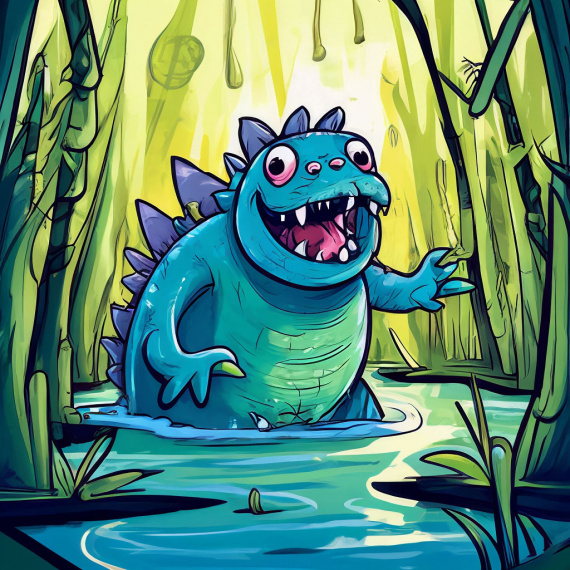 Услышав зов вожака, на поверхности болота появились разнообразные головки пресмыкающихся и земноводных. И заквакали, зашипели, заурчали в такт. Тут и лягушки выскочили, и другие змеи подползли, и тритон-подхалим Бузыка пожаловал, и древний Крыс Шиша вылез из-под коряги, что-то пискнул невпопад, опять перепутав персонажей.