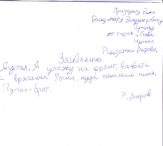 — Я, это … — Рамзанка подошёл к столу и положил бумагу.
